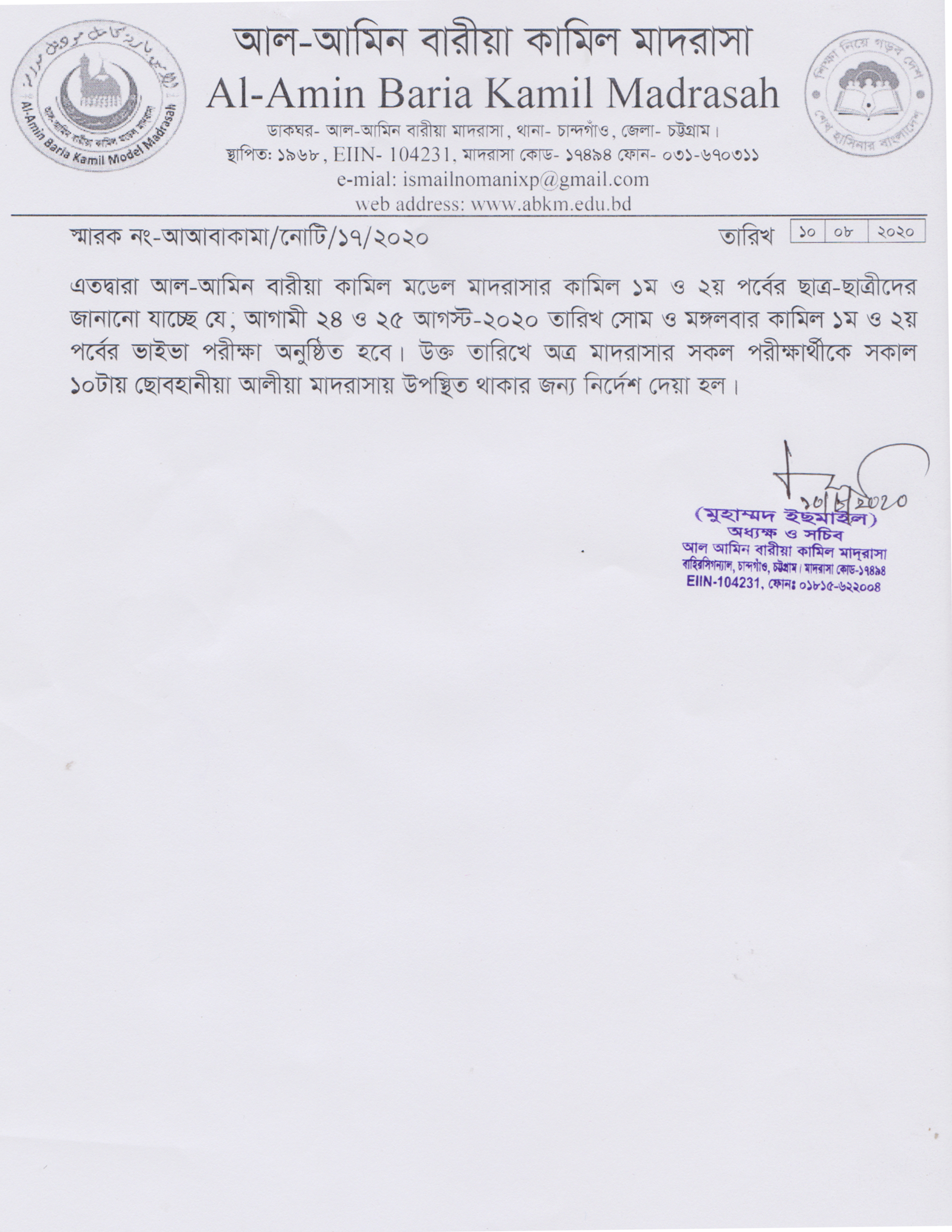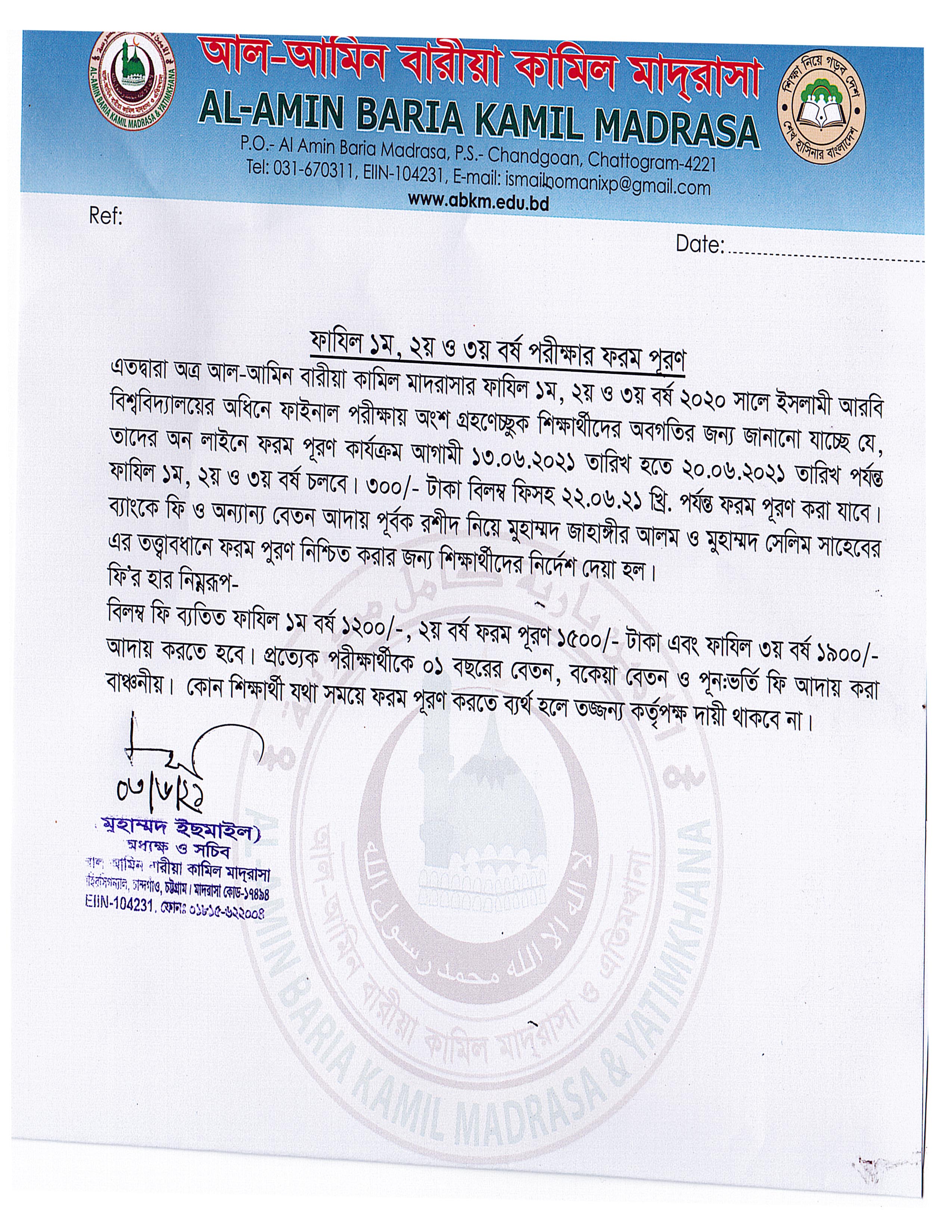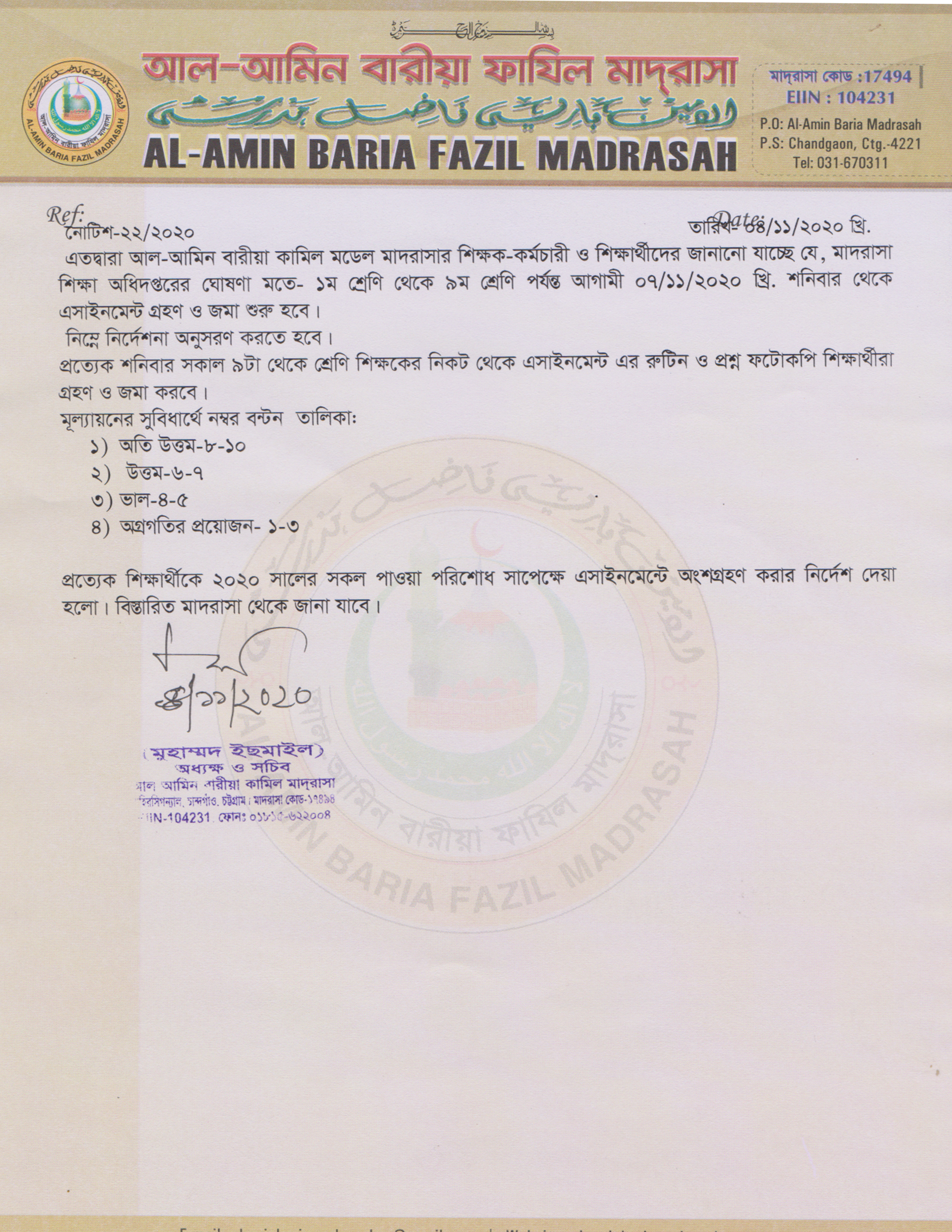 জাতীয় শোক দিবস, ফাযিল ১ম ভর্তি ও অ্যাসাইনমেন্ট সংক্রান্ত নোটিশ |