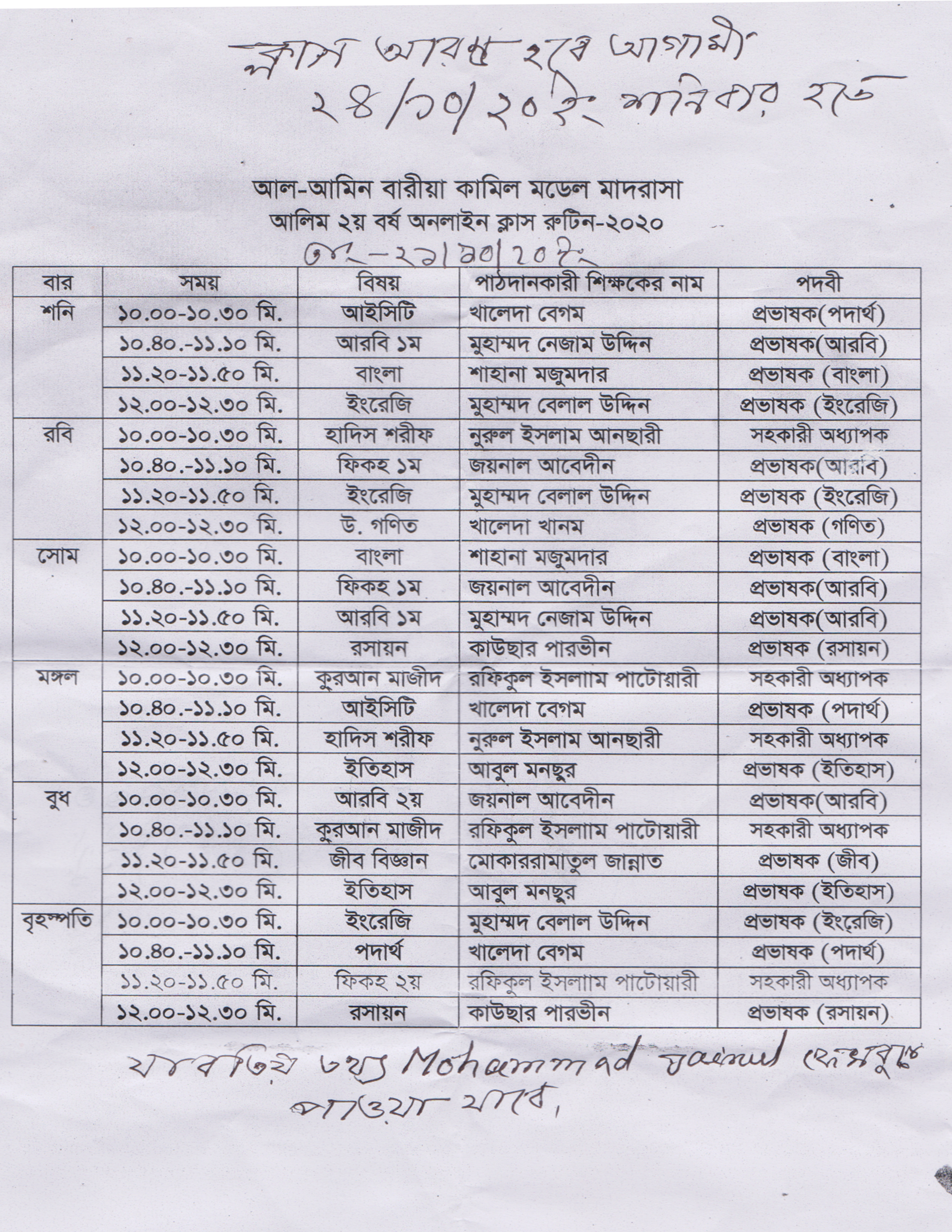 আলিম ২য় বর্ষ অনলাইন ক্লাস |